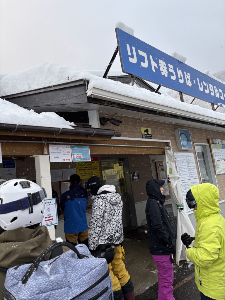 7時半にリフト券が発売しますが10分前に並んで前から5番目