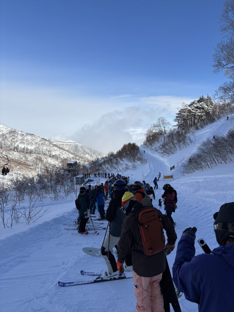 1本目を滑り終えると さらに列が長くなっております。