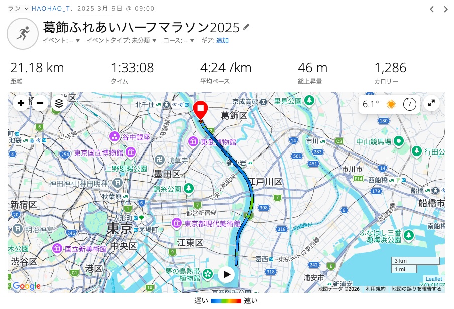 今年もやってきました、恒例の葛飾ふれあいハーフマラソン。